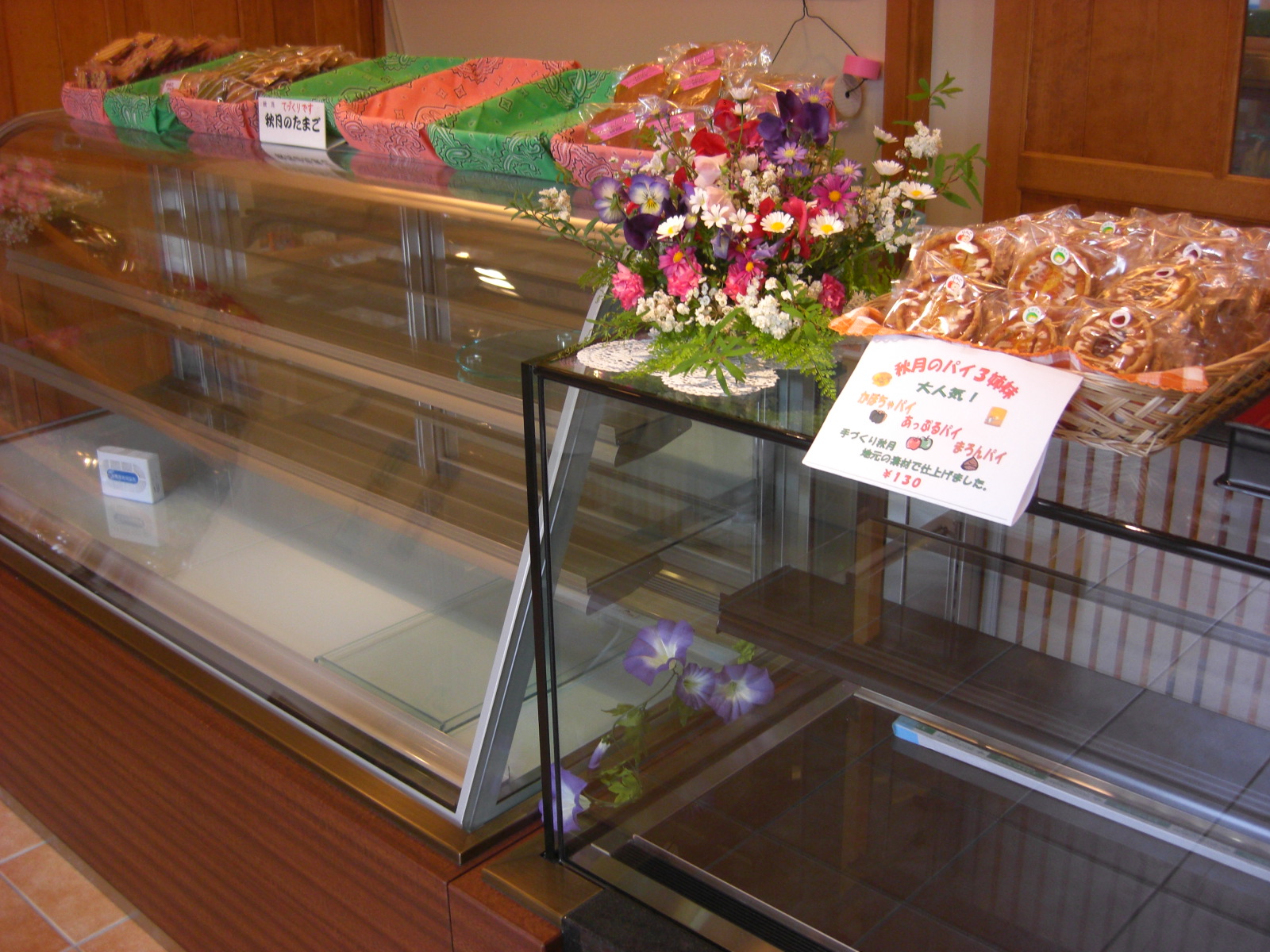 ケーキもおまんじゅうも品揃え豊富なお店です。人気の焼菓子『秋月のたまご』や