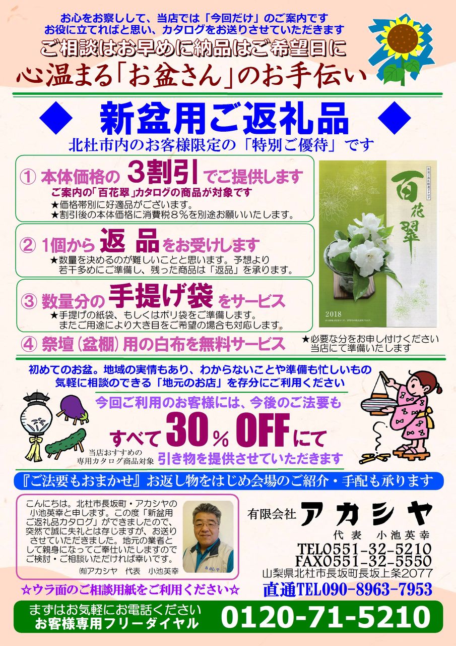 新盆行事やご返礼などは、北杜市内でも旧町村、また地区や集落によって、