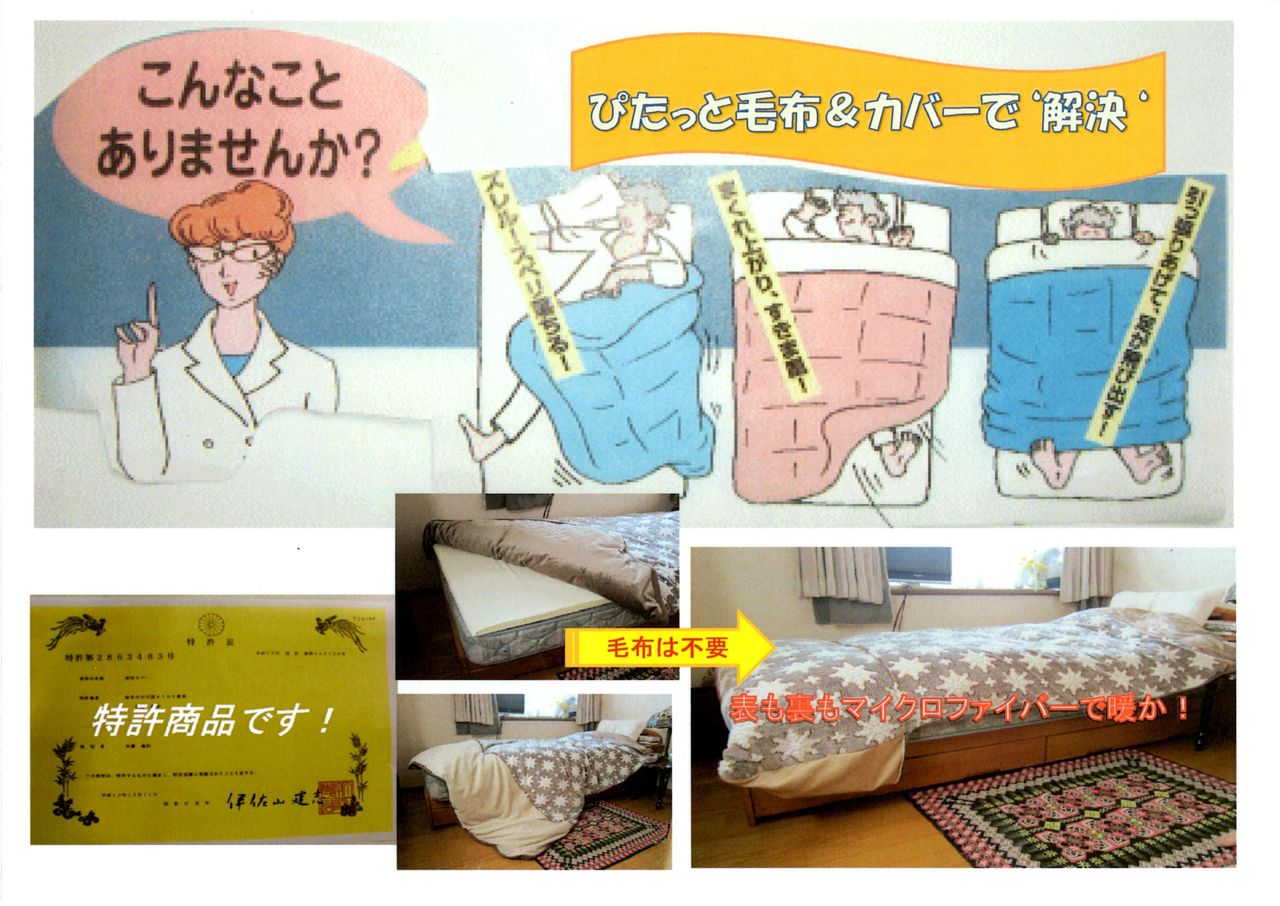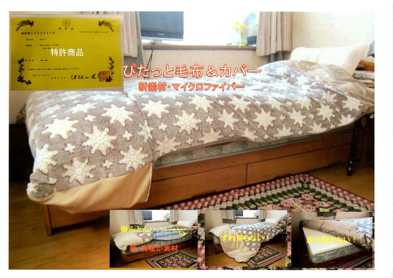寝つきが悪い。足が冷たくて眠れない。夜中に目が覚める。『特許・ぴたっと毛布』がすべて解決します!!