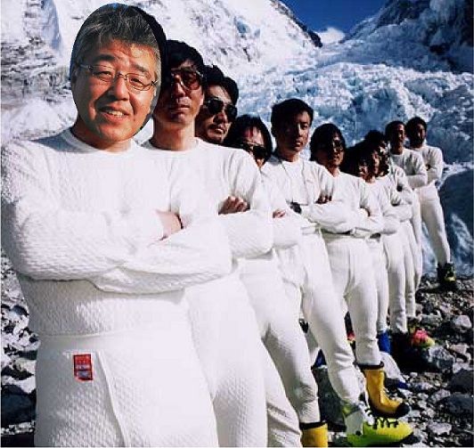 雪山にオジサンが腕組みしてズラリと並んでる写真‥